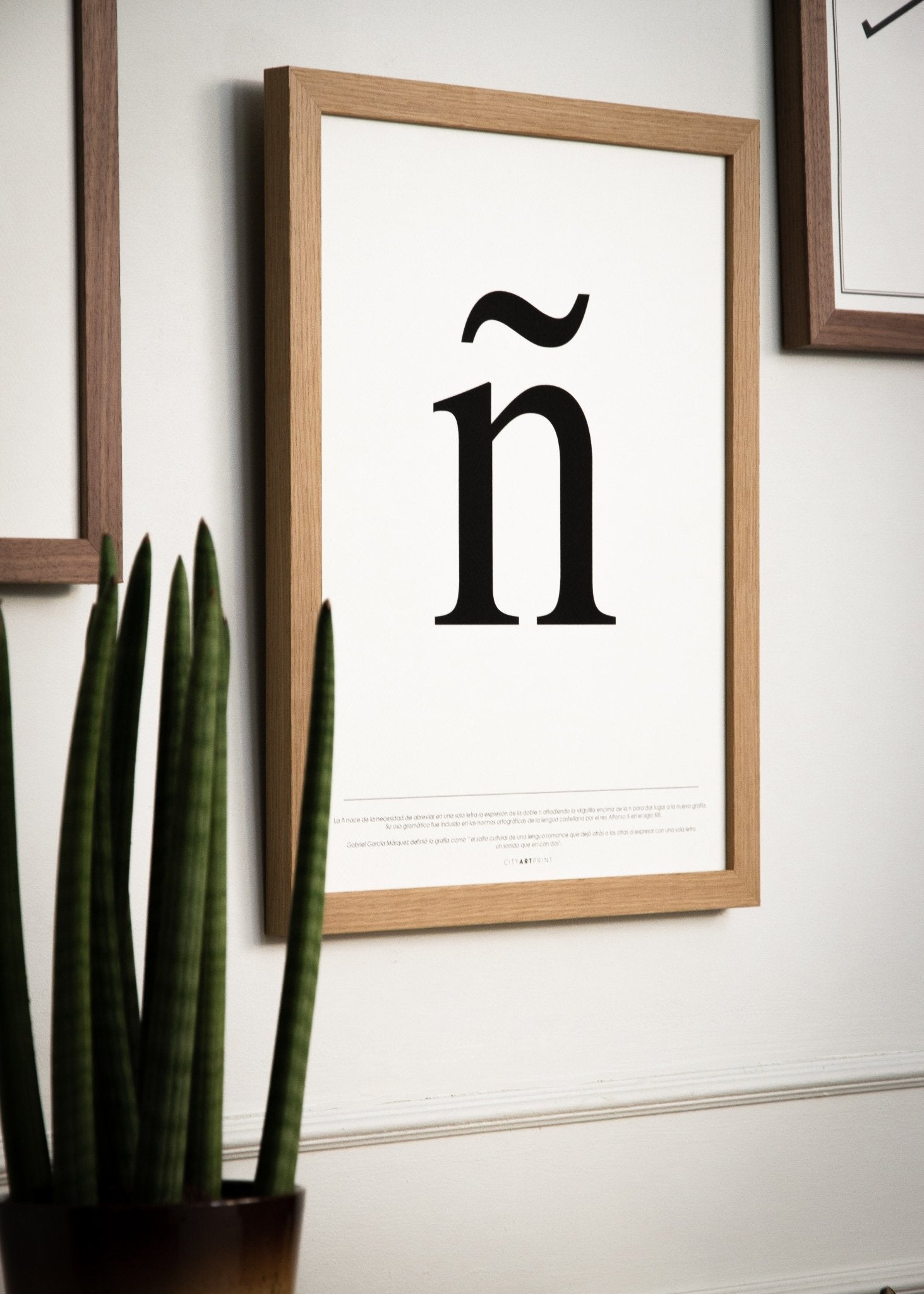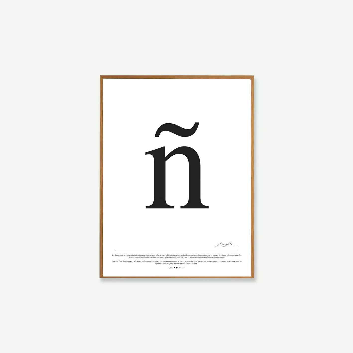 La ñ representa el salto cultural de la lengua latina al español al añadir una especie de sombrero garabateado encima de la n, lo que dio lugar a una nueva letra diacrítica para diferentes idiomas. Debajo de la ilustración se explica de forma simplificada la historia y los orígenes.
