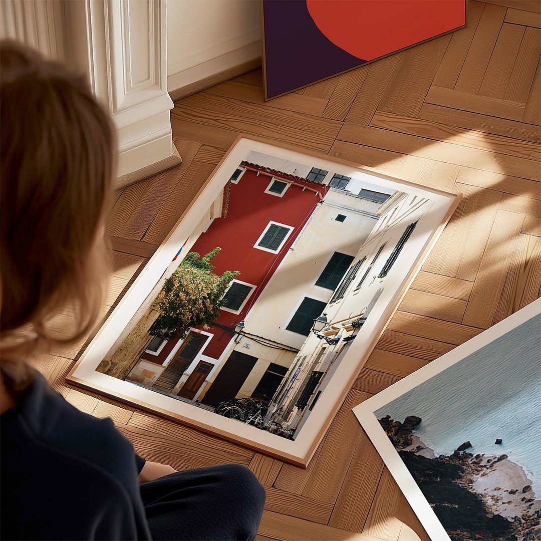 En el corazón de la isla Menorca cada calle cuenta una historia. Esta fotografía capta la esencia de la arquitectura única de la isla y de sus coloridas fachadas.