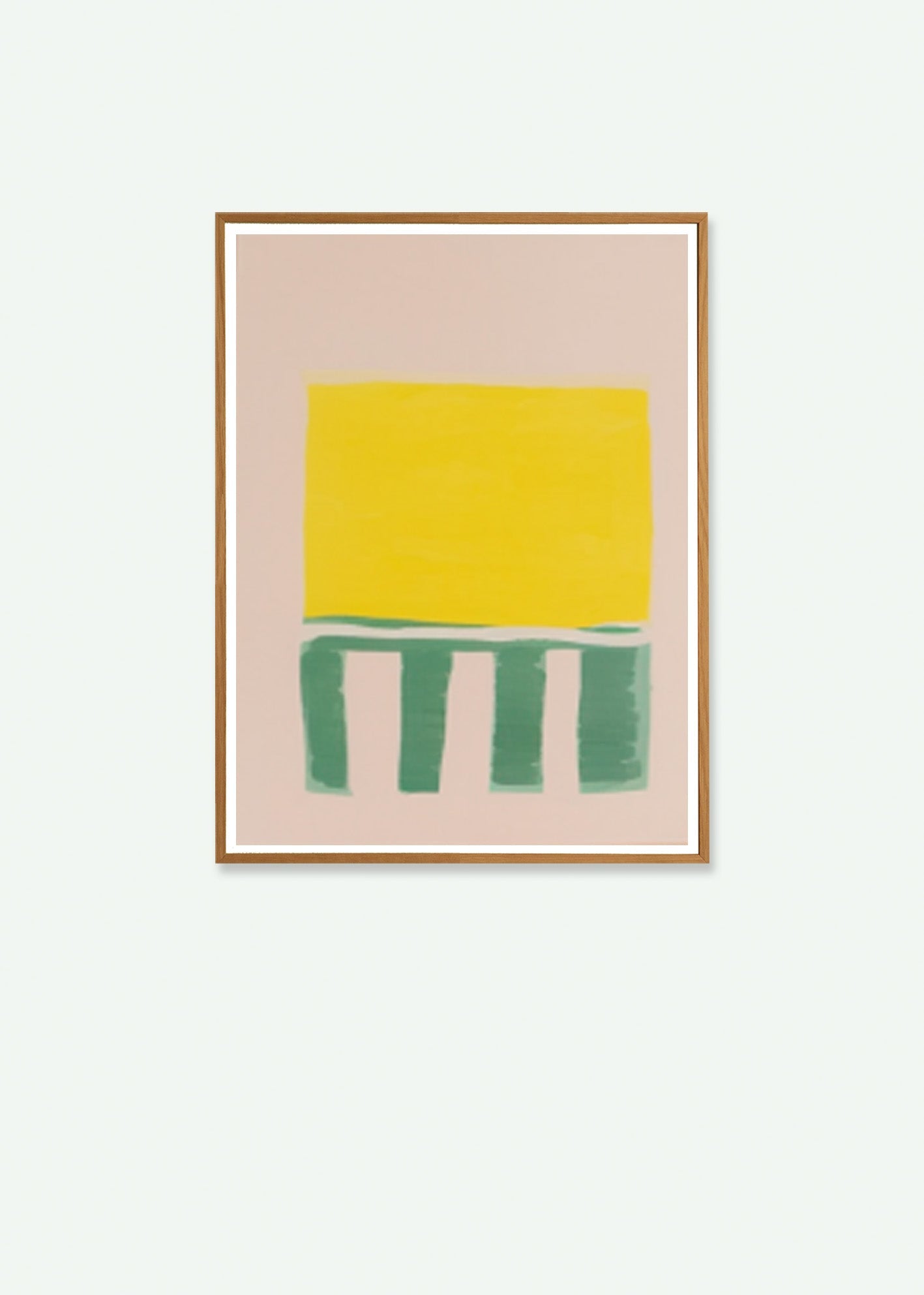 Un póster abstracto en dos colores, que muestra un delicioso Lemon Pie con una base de rayas verdes. Esta composición única aporta un toque de fantasía y modernidad, capturando la esencia de un dulce placer.
