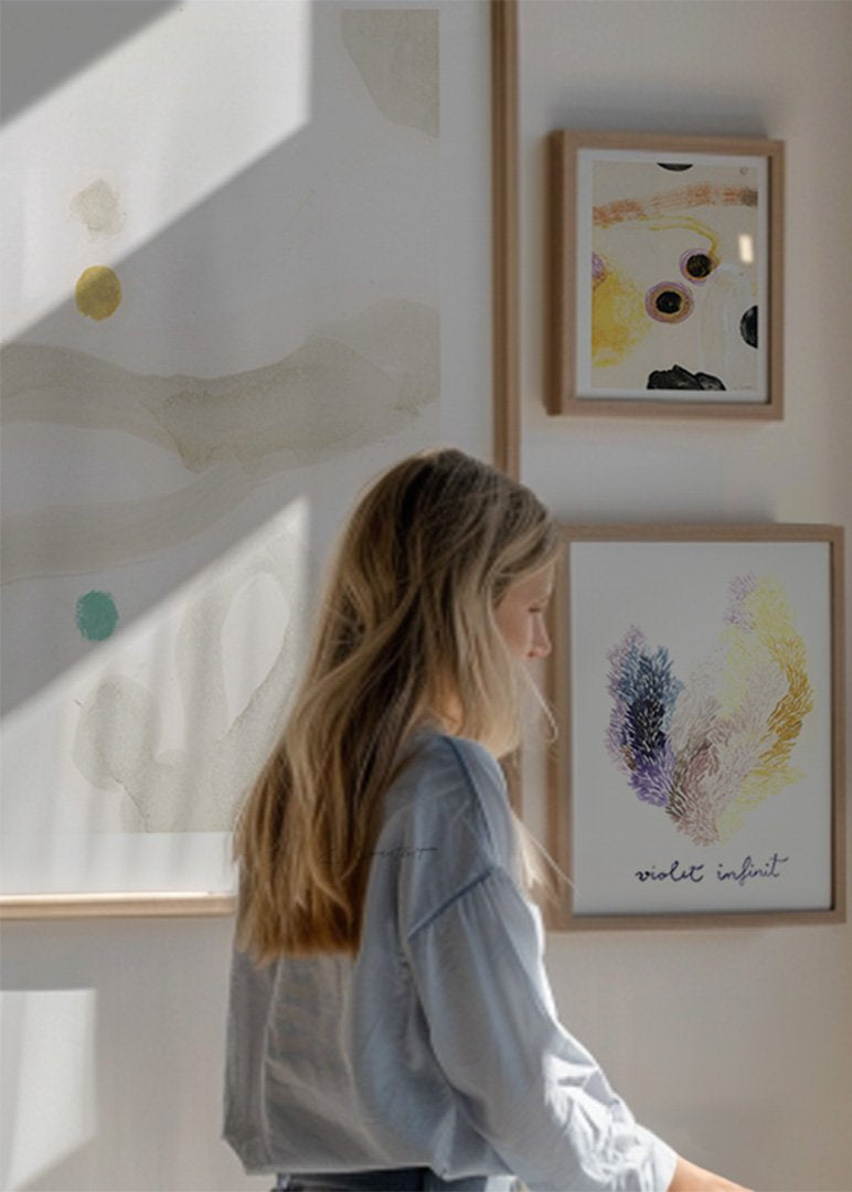 Este intrigante póster pintado por Susana Del Baño captura la esencia del misterio y la serenidad del mar en tonalidades morados y dorados, ofreciendo una experiencia visual única y cautivadora.