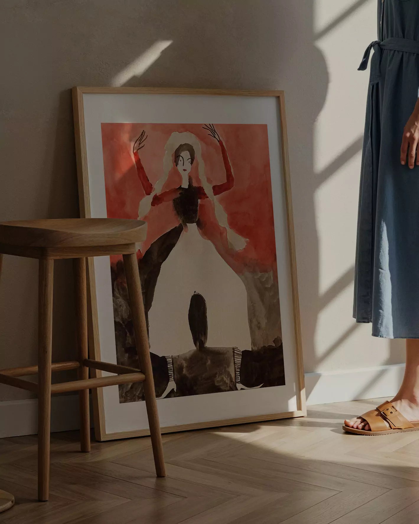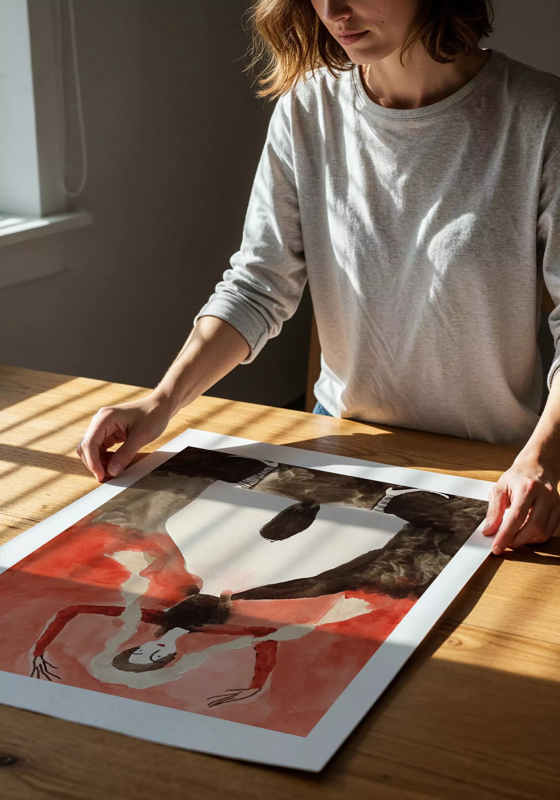 Descubre este póster artístico exclusivo, impreso a partir de una acuarela original que retrata una figura en movimiento envuelta en tonos cálidos y suaves. Curado por la artista Susana del Baño, esta obra transmite calma, sensibilidad y belleza a través de cada pincelada.