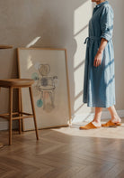 Esta obra combina arte contemporáneo con detalles de color que destacan sobre un elegante dibujo de contorno de la icónica casa.