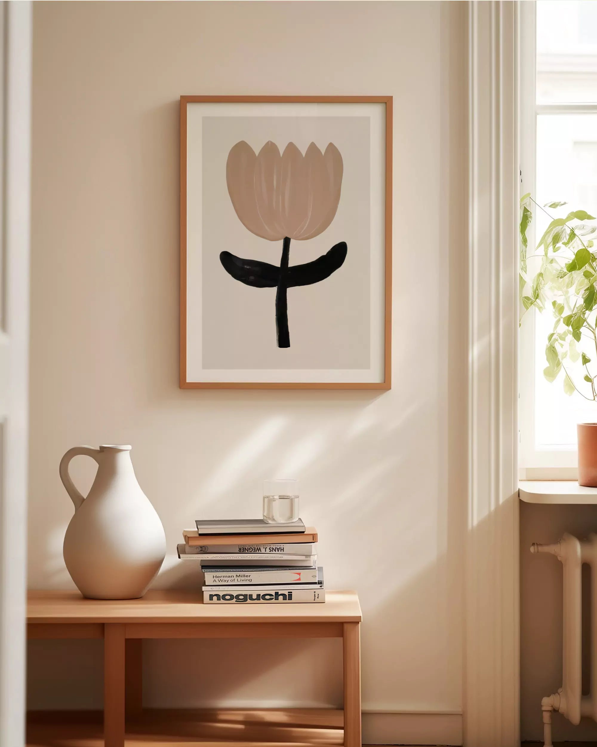 Añade un aire de serenidad y elegancia a tu hogar con el póster 'Minimal Bloom', una ilustración de Merel Takken en delicados tonos beige. Su estilo limpio lo hace ideal para interiores nórdicos, mediterráneos o minimalistas.
