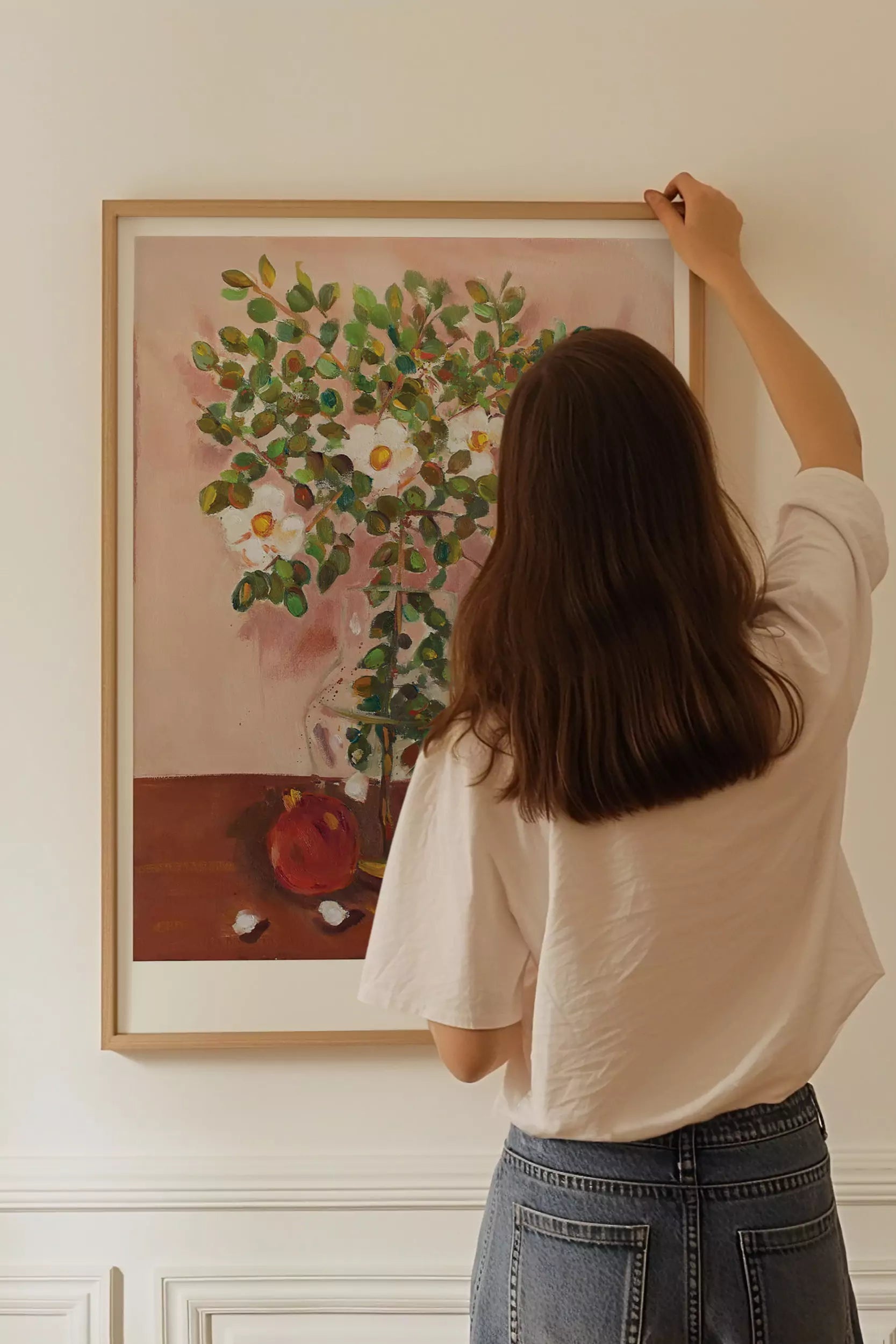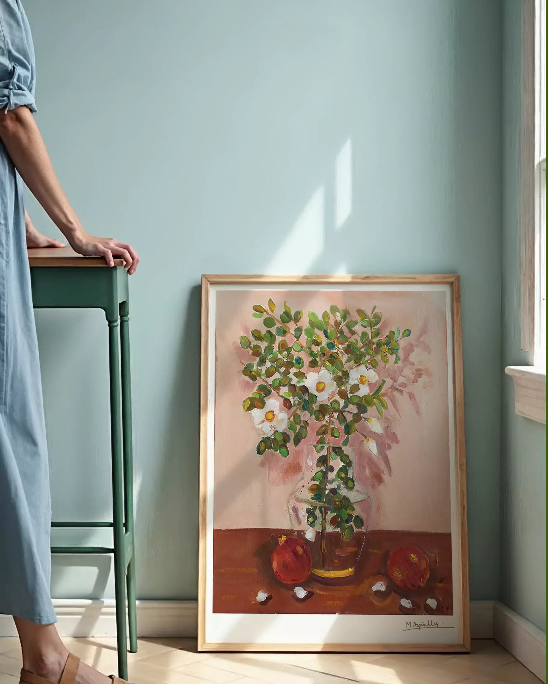 Her painting is characterized by the strength of color, line and the different weights of the elements portrayed in the painting. She uses nature as a model, which has led her to delve into the world of still life.